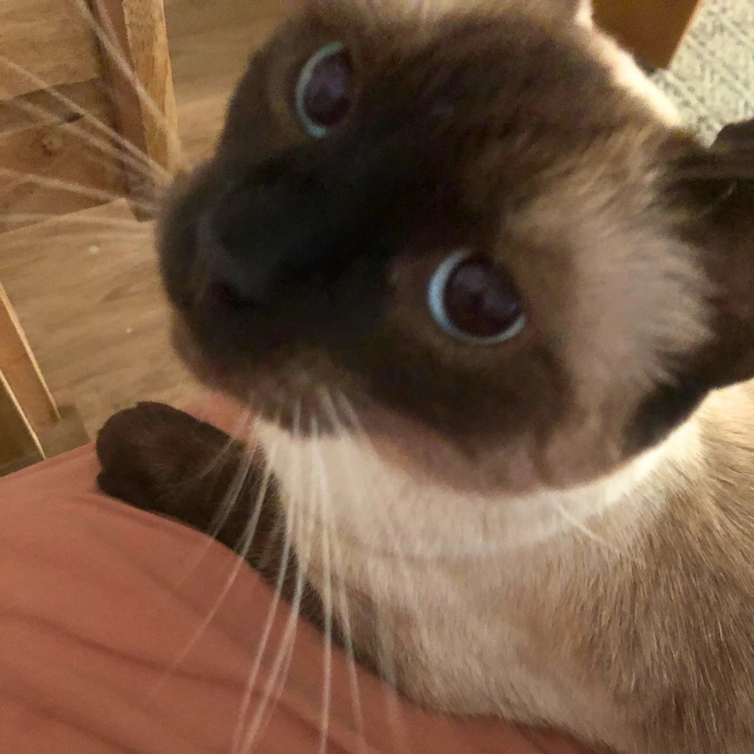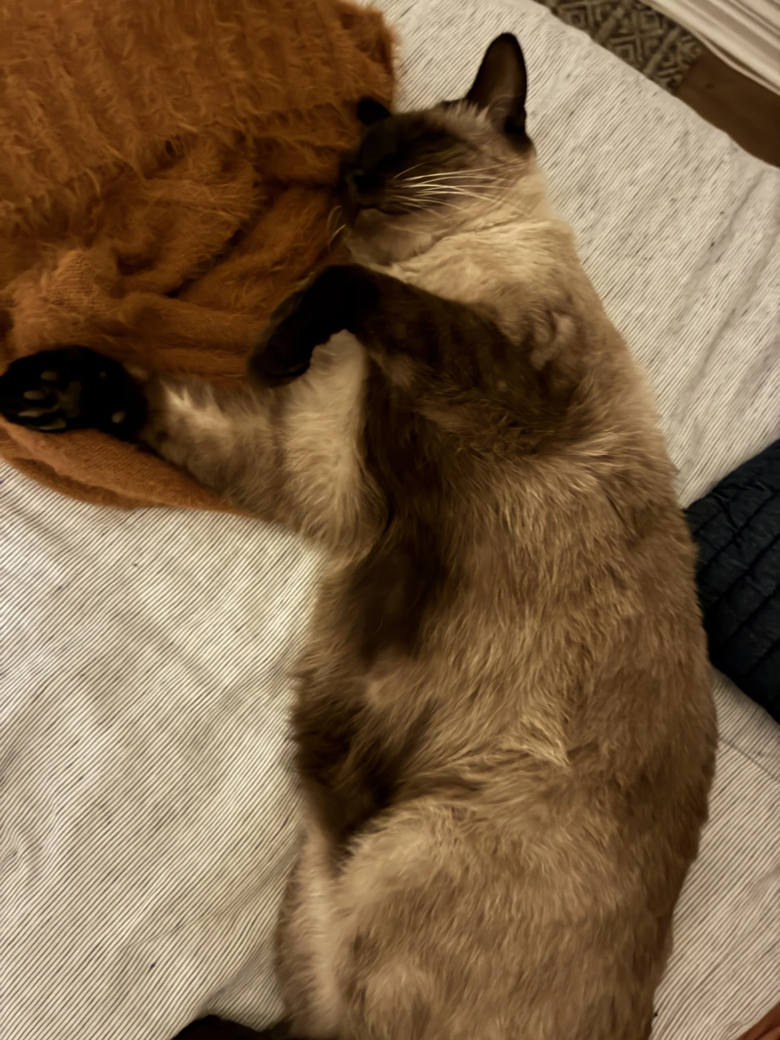 Vin is a beautiful Burmese cat with stunning, big blue eyes and fur that resembles a delicious blend of caramel, chocolate, and vanilla - like a walking Caramilk! From the moment he arrived, it felt like he was a special blessing in my life.